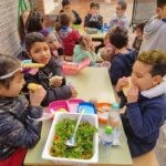 Disfrutamos los frutos de nuestro huerto después de haberlos mimado durante unos meses. Hoy el desayuno ha sido saludable: ensaladas preparadas con la colaboración de las familias. Esta actividad es parte de los programas «Hábitos de vida saludable» y «Aldea» de la Junta de Andalucía.