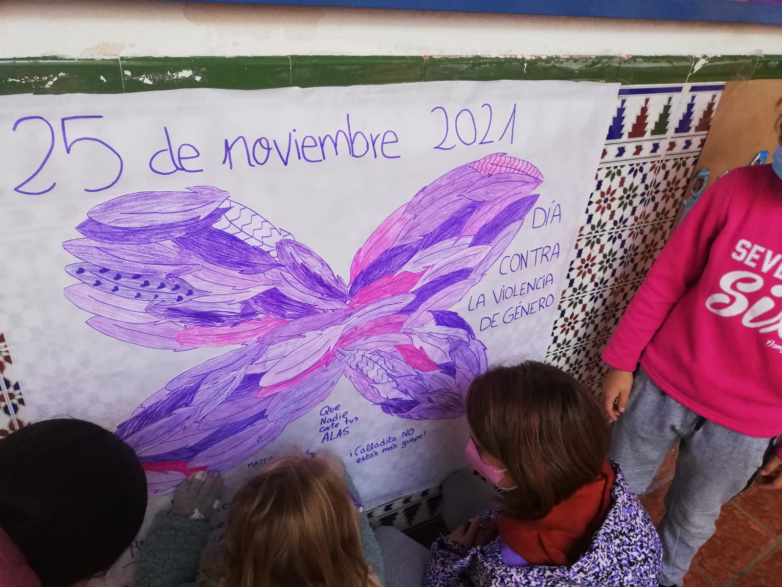 Conste que el 25N me parece una celebración tan necesaria como compleja de explicar y mucho más en las edades que nos gastamos. Pues ése ha sido el quid de la cuestión, tirar de todo lo necesario para que la jornada representara el convencimiento de todos. Si hay que hacer llegar el mensaje a los pequeños pues cuentacuentos en infantil hasta tercero de primaria, somos Comunidad de Aprendizaje y colaboramos con entidades, pues hoy ha sido Entreculturas.