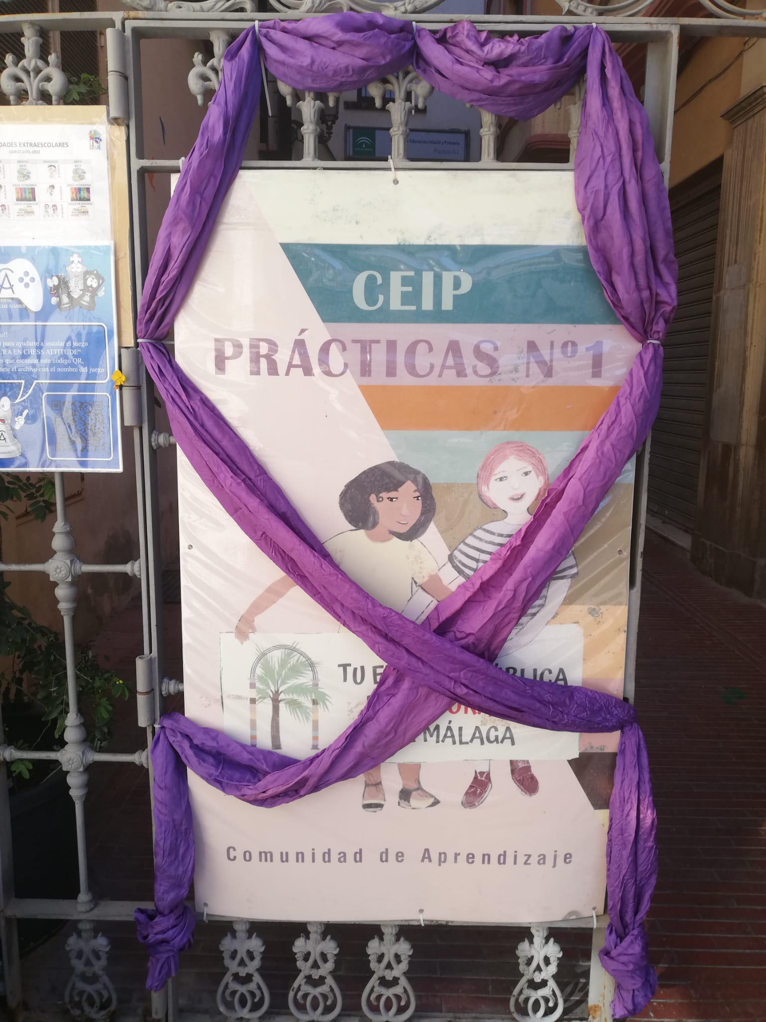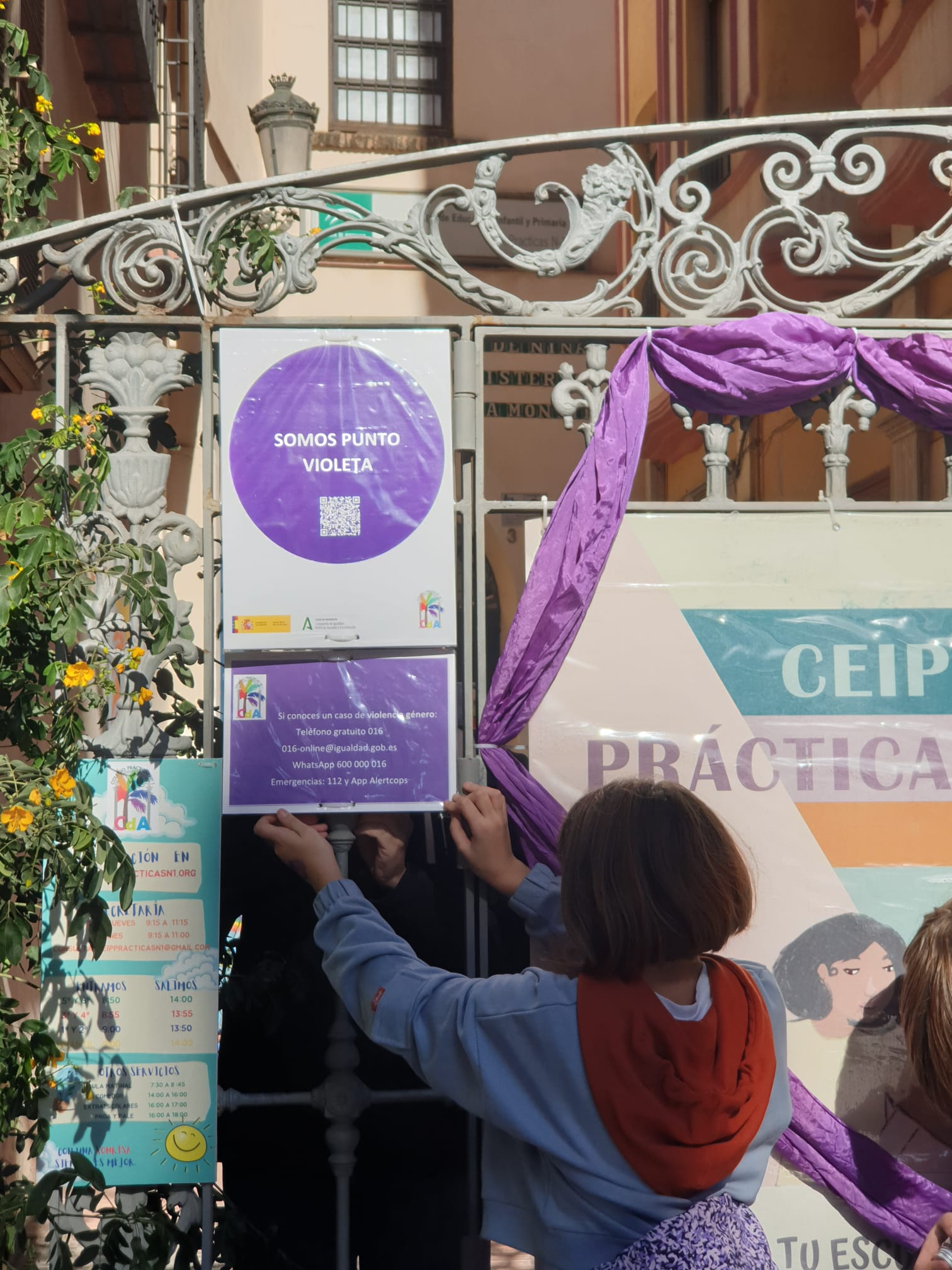 Que sí, ya sé que es un lazo pero lo nuevo del día de hoy son los puntos violetas en una serie de escaparates y en el C.E.I.P Prácticas N1 ¡Oído Cocina!, son lugares en los se prestará auxilio a las mujeres en situación de Violencia de Género.
