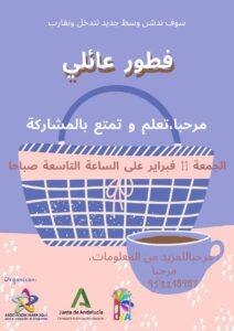 Noticias8 febrero 20228 febrero 2022Desayuno en Familiaby Ceip Practicas Nº 10 0 El viernes 11 de febrero a las 9 de la mañana organizamos, en colaboración con la Asociación Marroquí, el «Desayuno en Familia», un nuevo espacio de Mediación donde compartiremos y disfrutaremos de un delicioso desayuno.