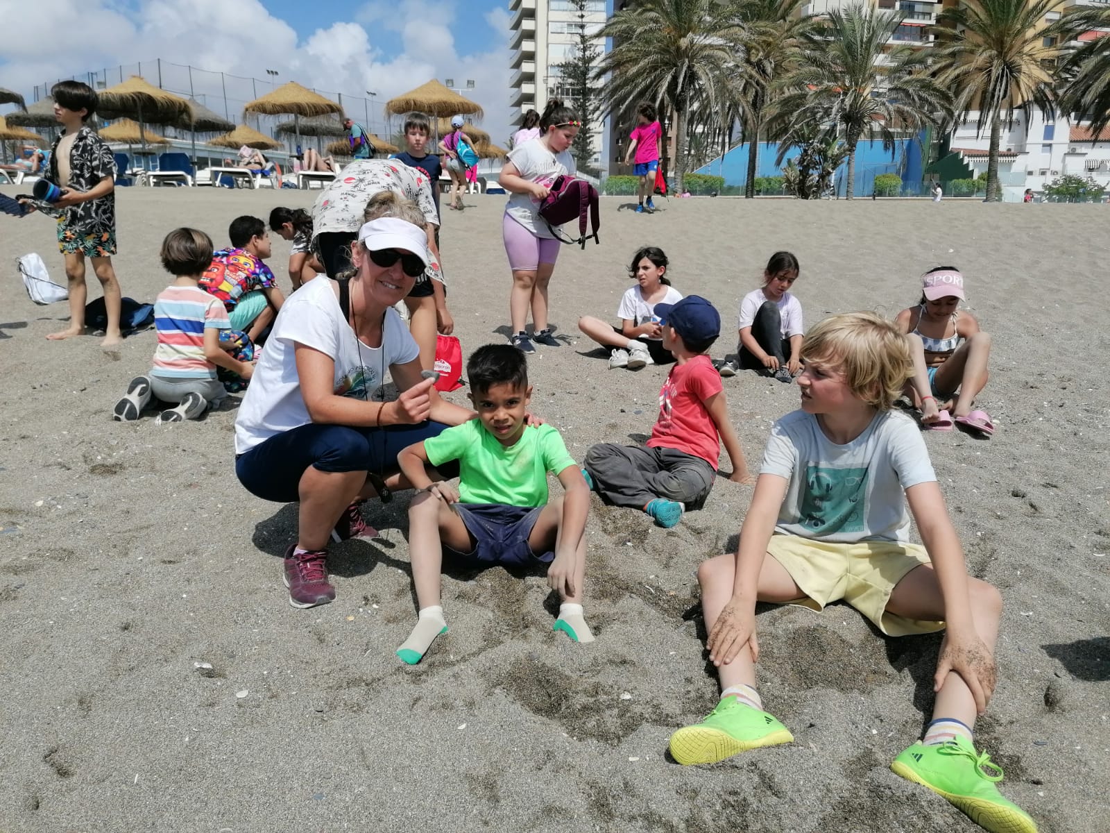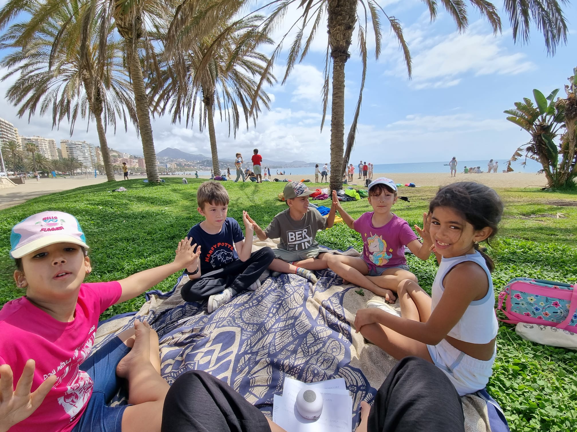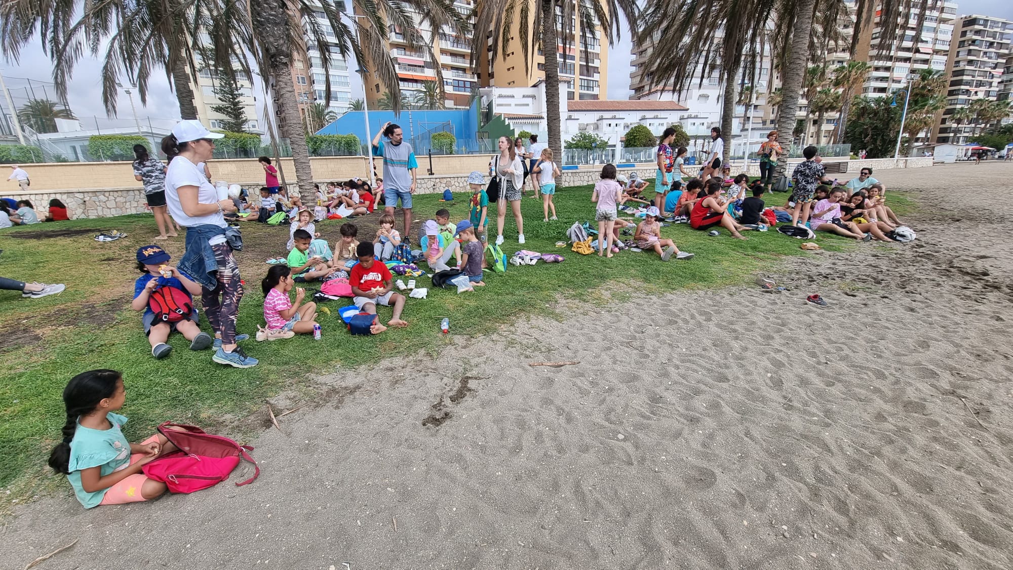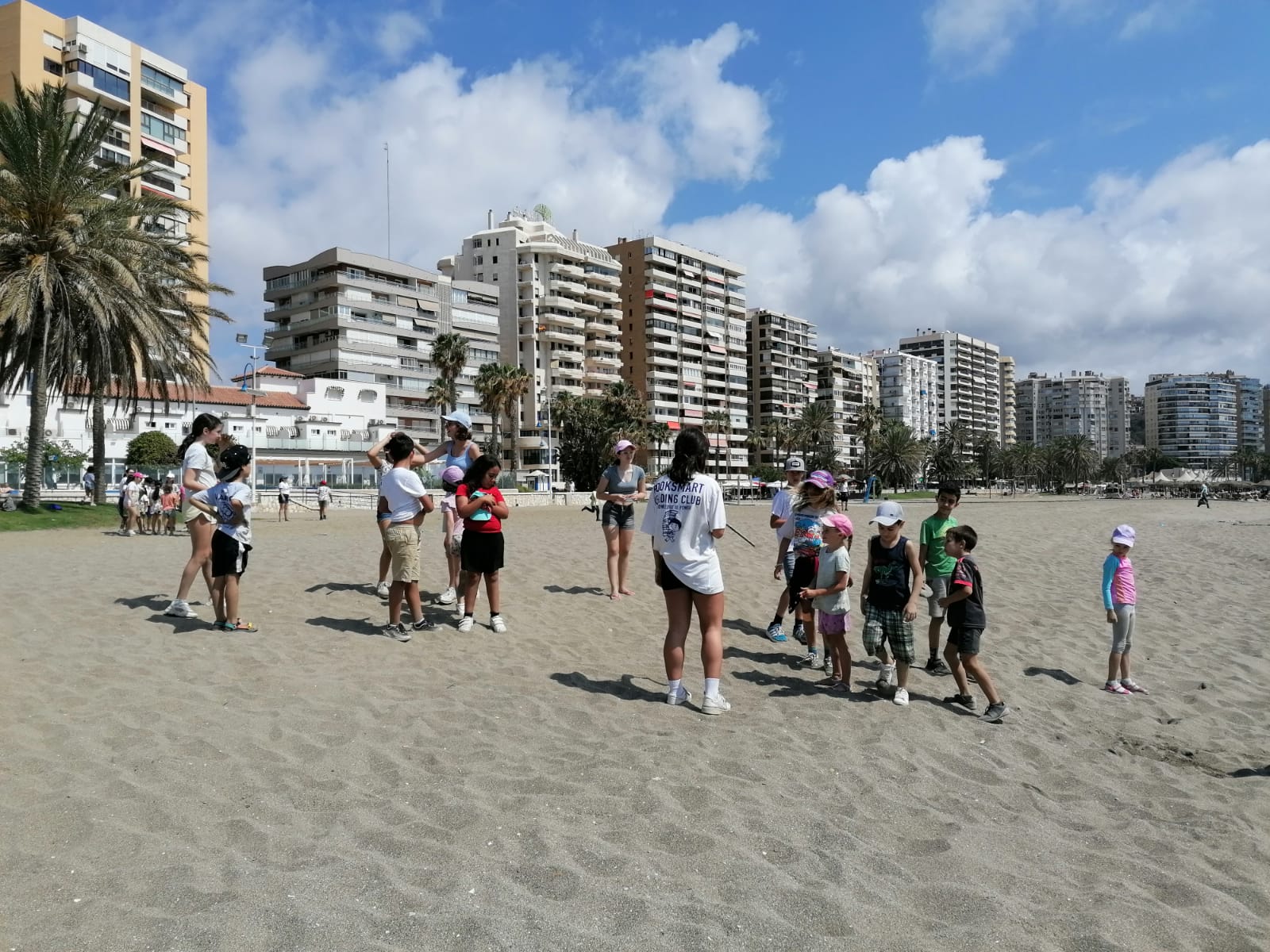 Dentro de nuestro entorno cercano, en esta ocasión hemos cambiado el bosque de Gibralfaro por la playa donde hemos realizado una serie de actividades integrando diferentes áreas. Talleres sobre yoga, expresión artística, geometría, … donde ha participado el alumnado de 1º a 5º y nuestra amplia comunidad educativa: monitoras, voluntariado, familias,…¡El cuidado de los mayores a los peques ha sido fantástico!.