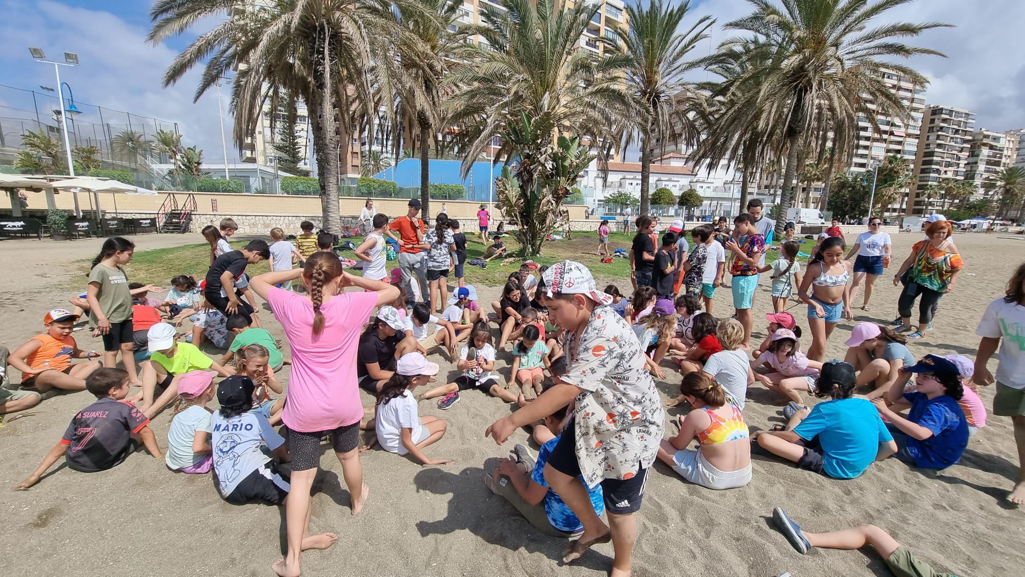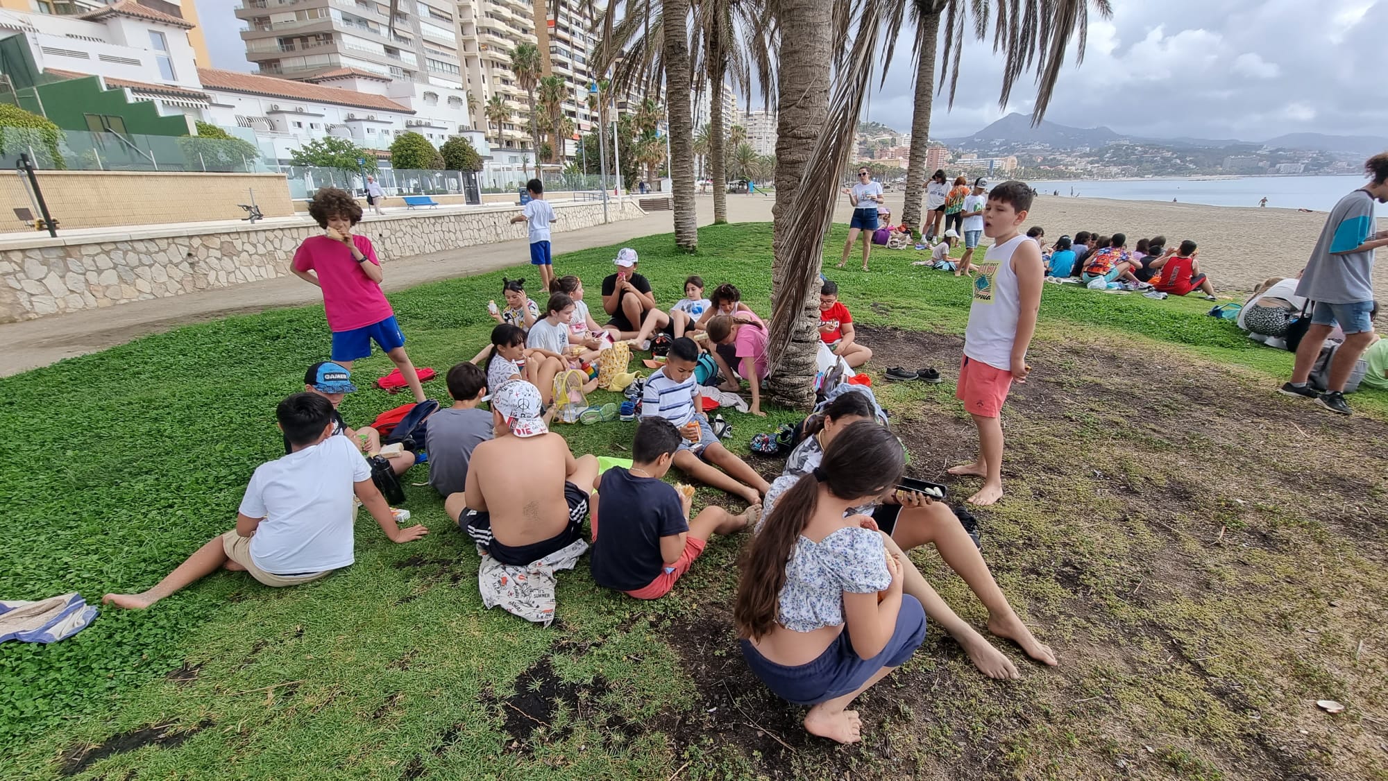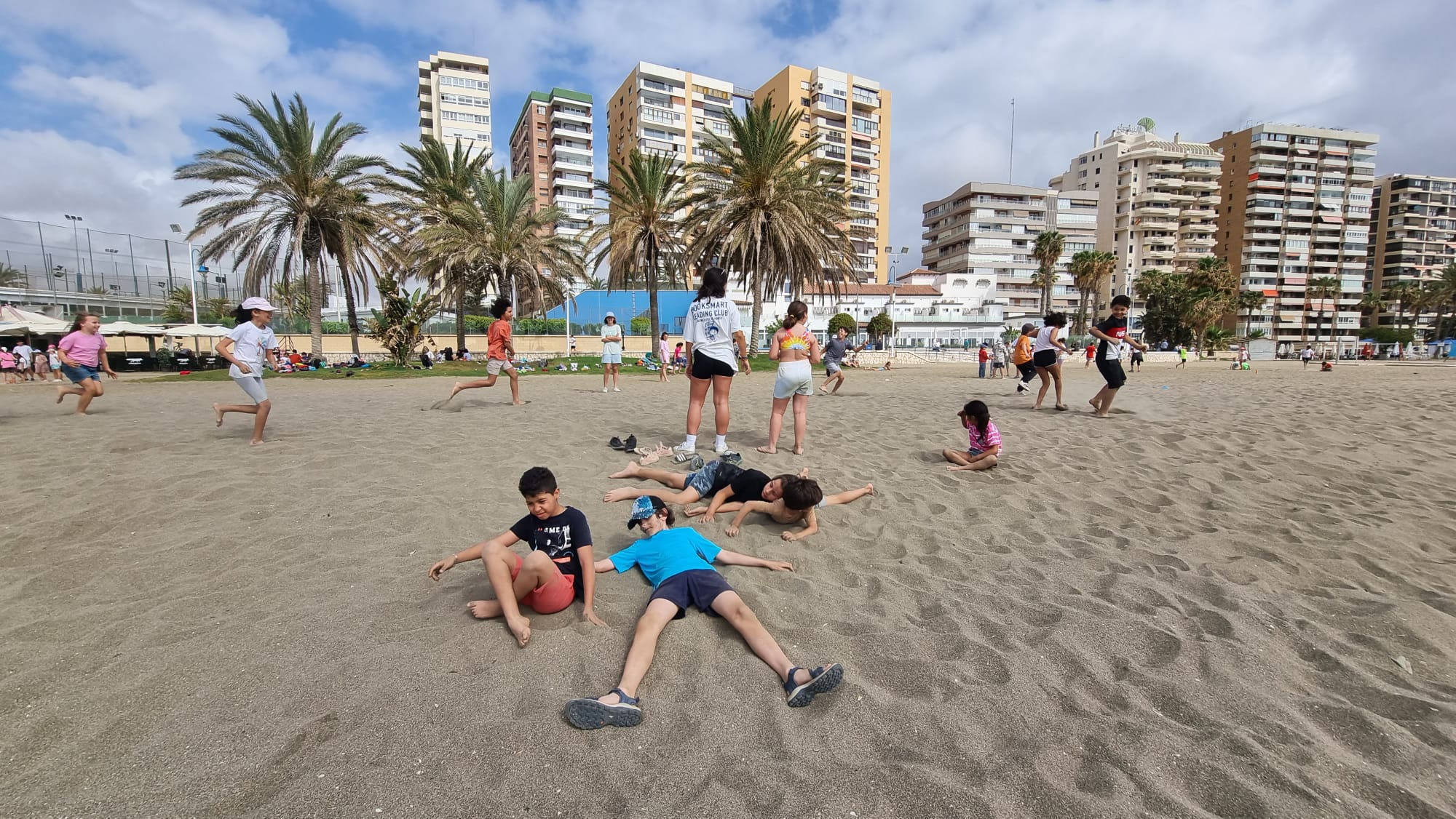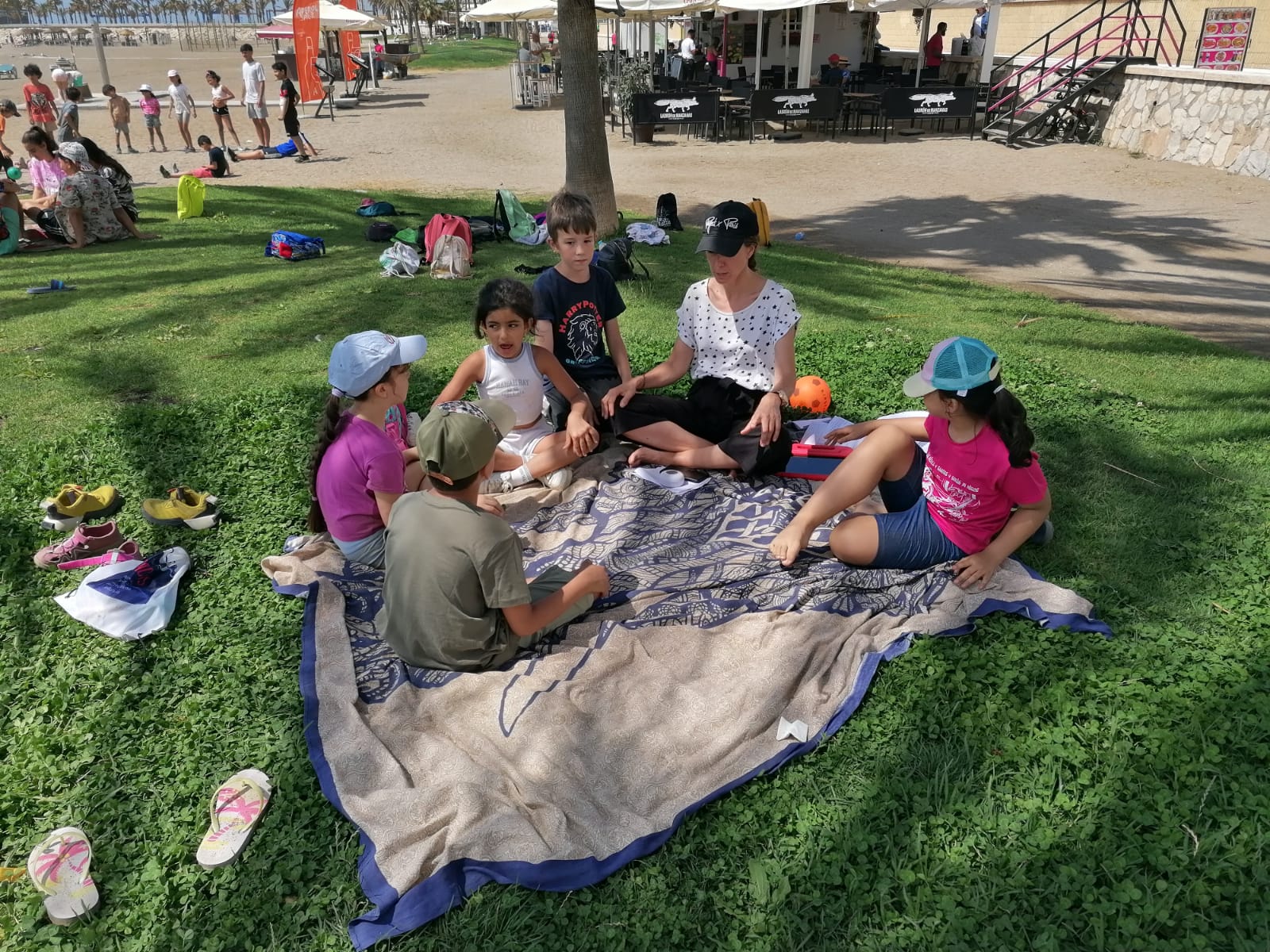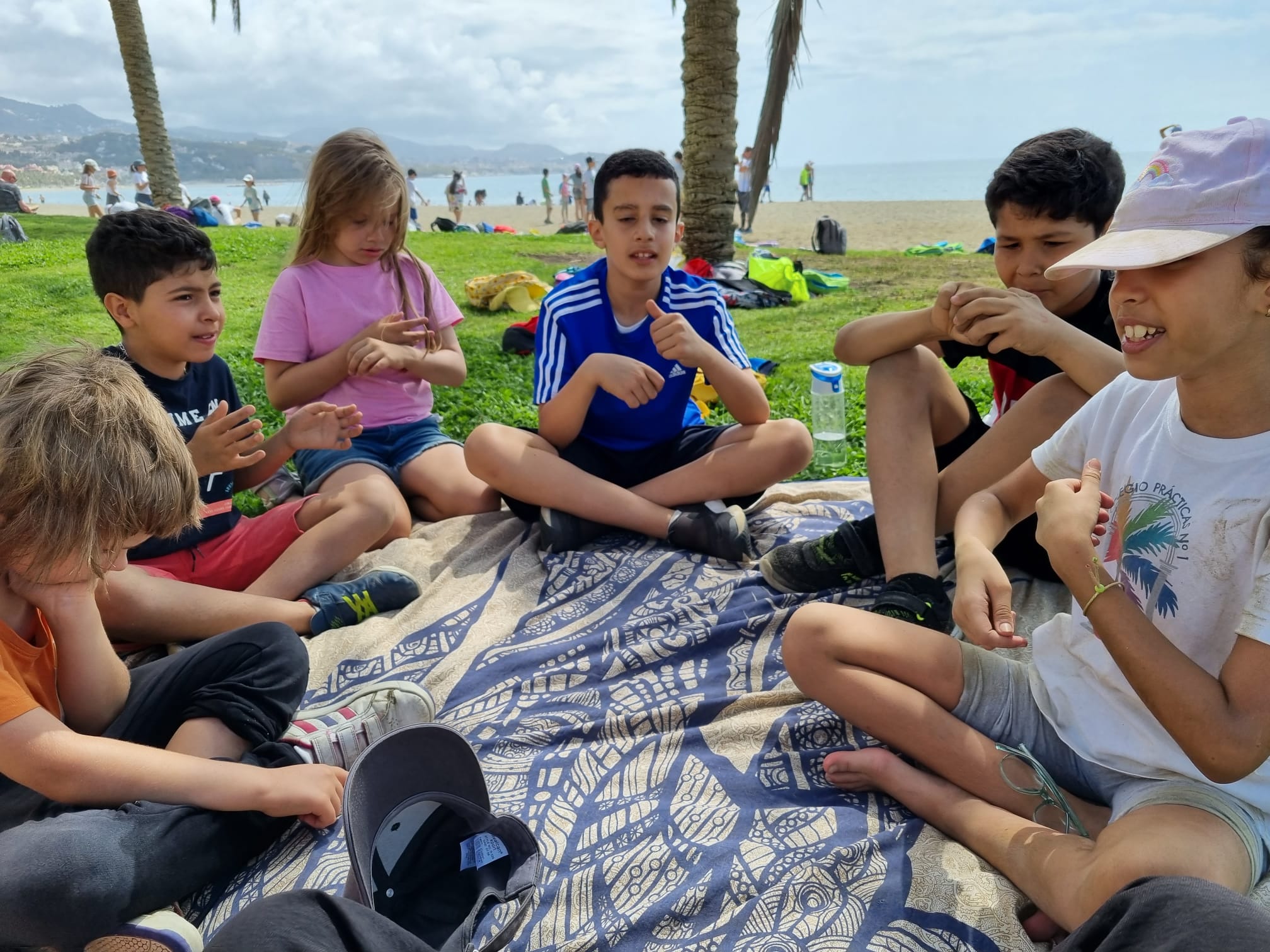 Dentro de nuestro entorno cercano, en esta ocasión hemos cambiado el bosque de Gibralfaro por la playa donde hemos realizado una serie de actividades integrando diferentes áreas. Talleres sobre yoga, expresión artística, geometría, … donde ha participado el alumnado de 1º a 5º y nuestra amplia comunidad educativa: monitoras, voluntariado, familias,…¡El cuidado de los mayores a los peques ha sido fantástico!.