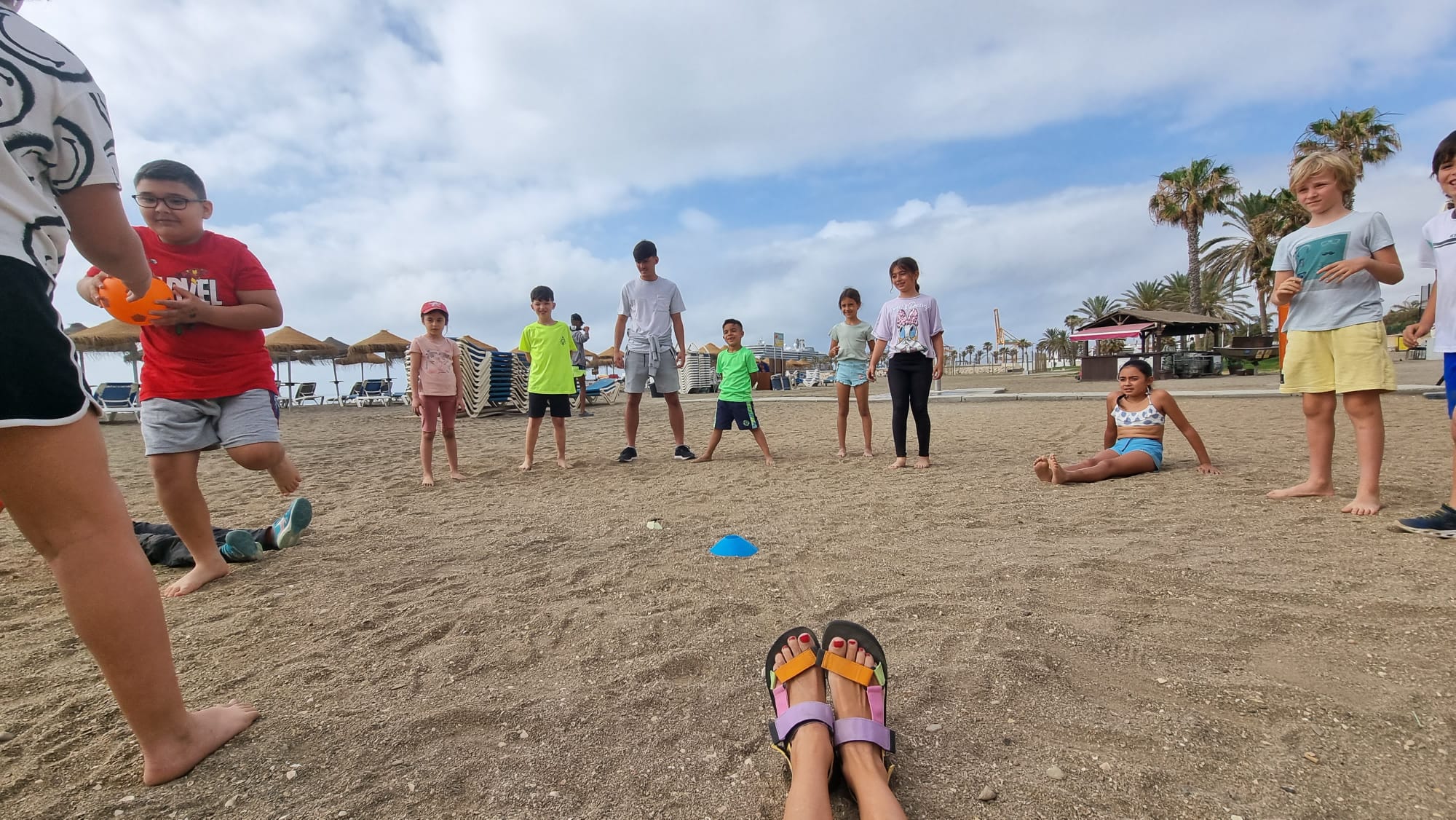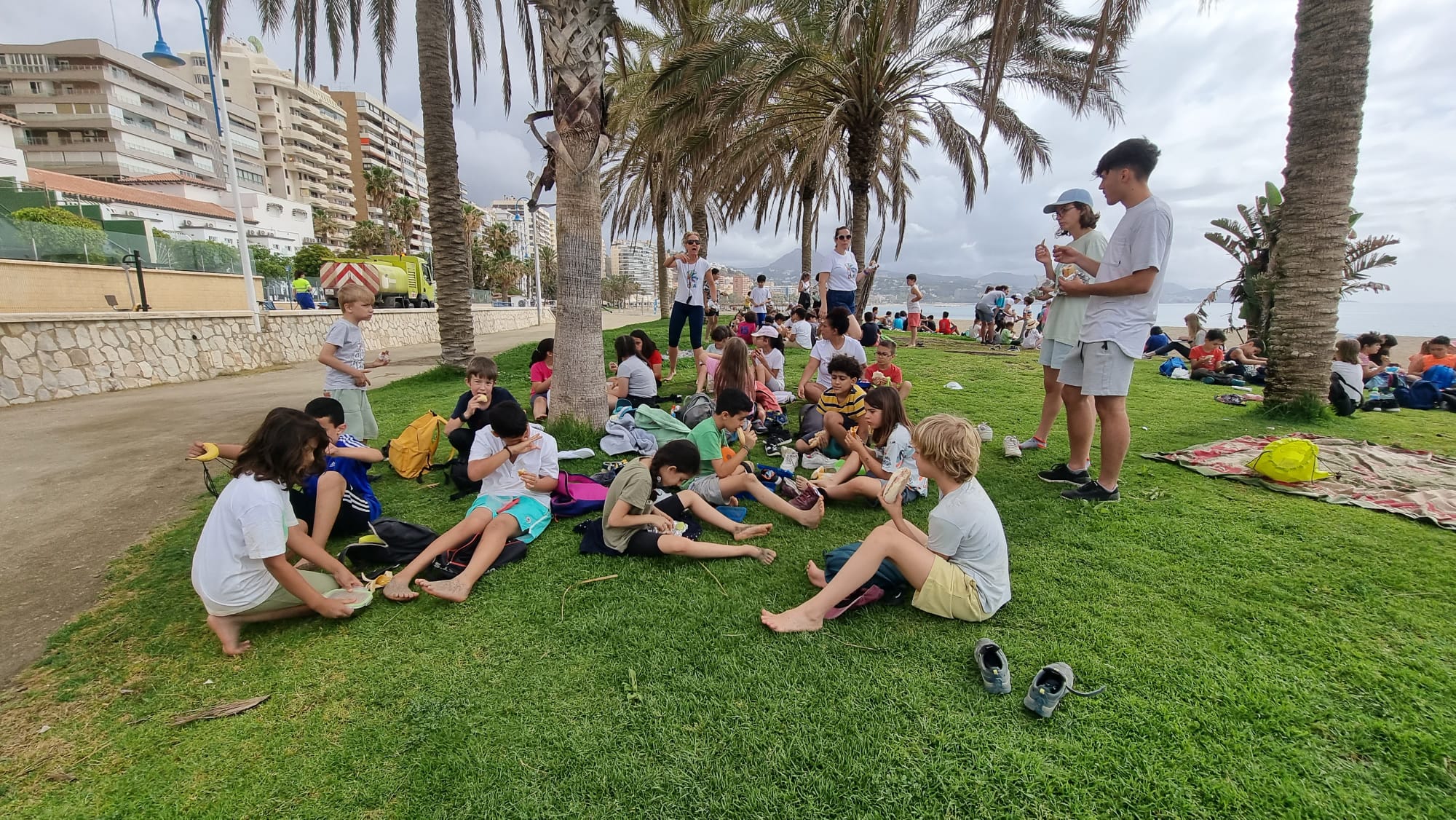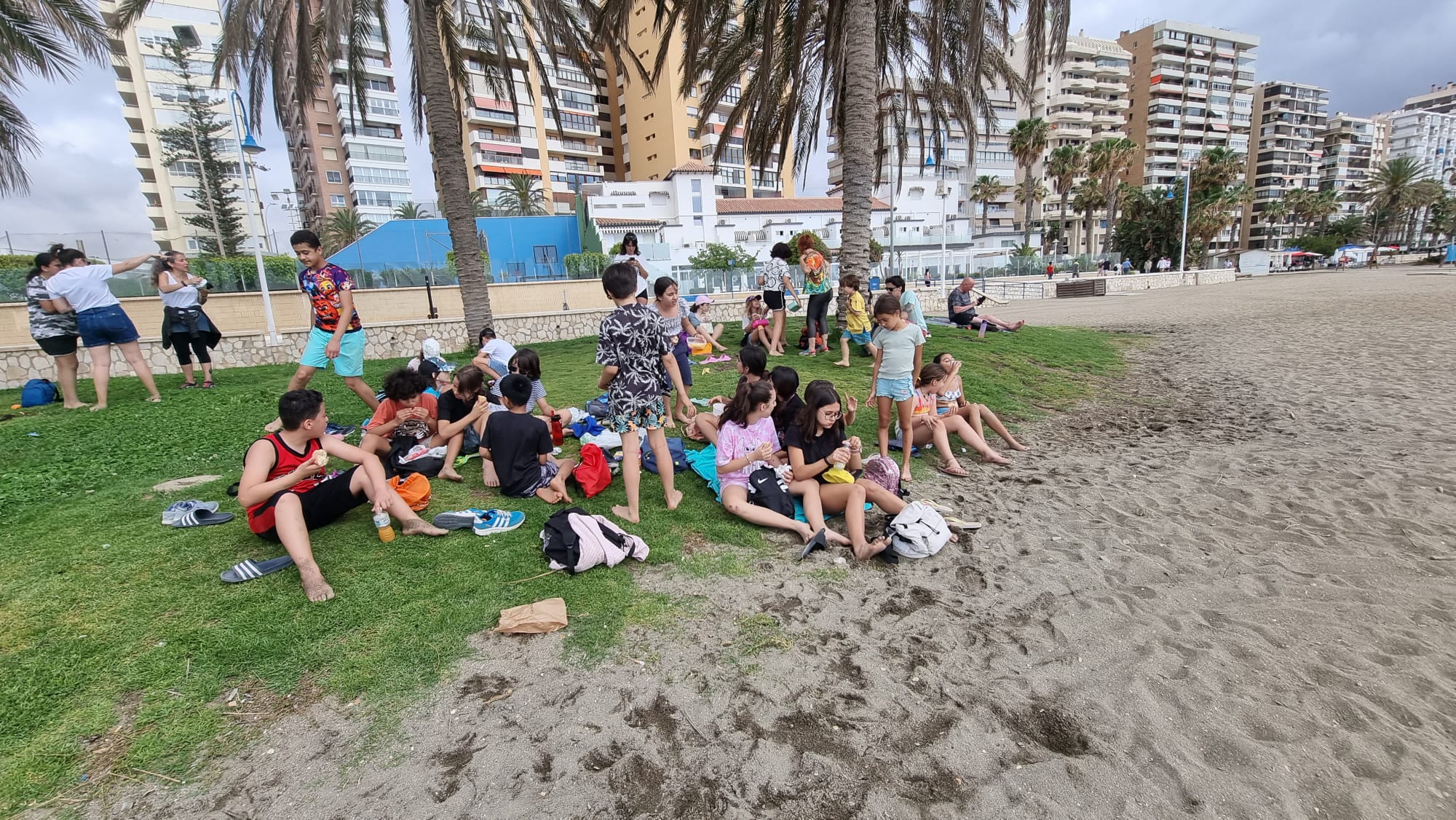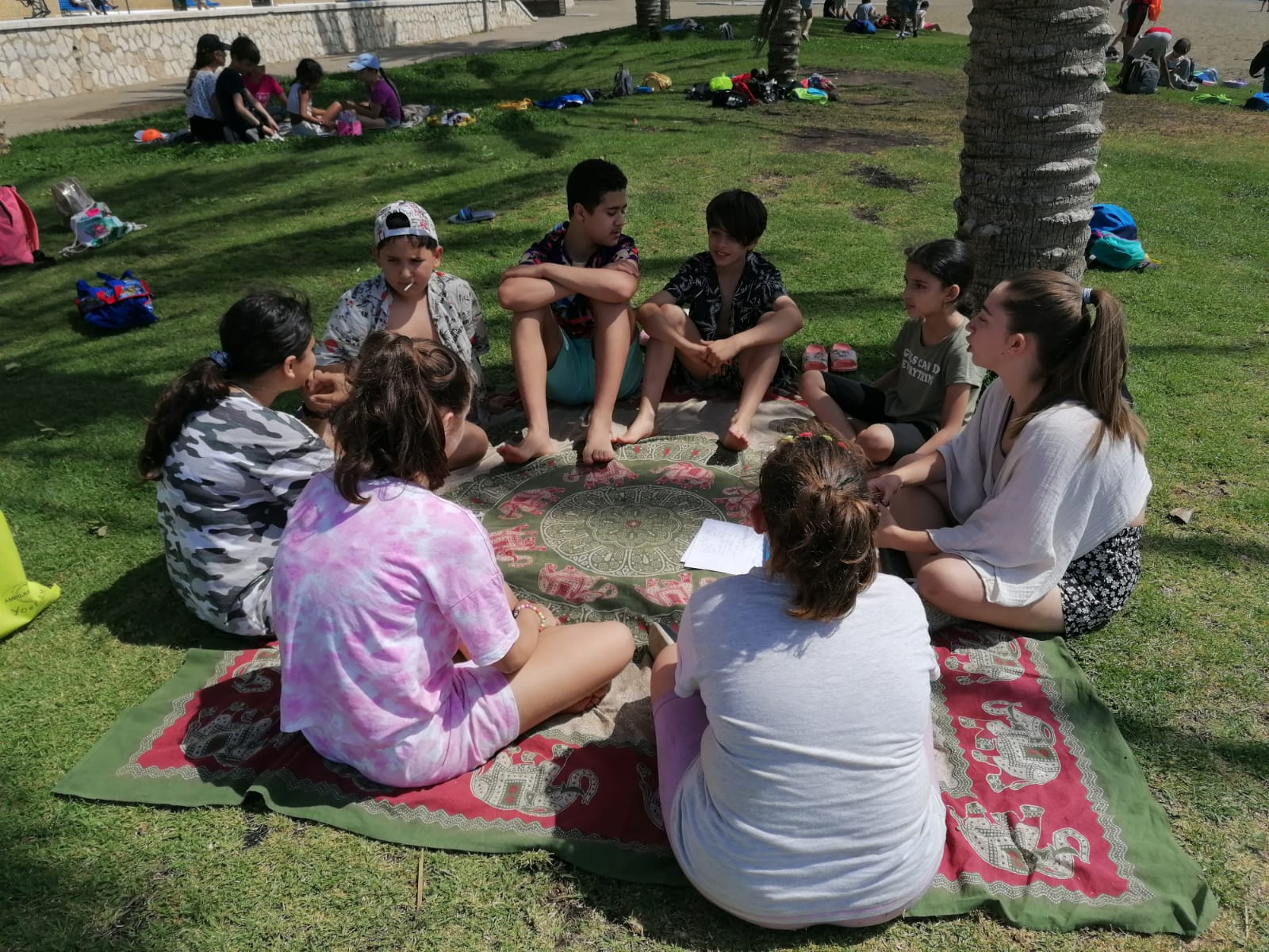 Dentro de nuestro entorno cercano, en esta ocasión hemos cambiado el bosque de Gibralfaro por la playa donde hemos realizado una serie de actividades integrando diferentes áreas. Talleres sobre yoga, expresión artística, geometría, … donde ha participado el alumnado de 1º a 5º y nuestra amplia comunidad educativa: monitoras, voluntariado, familias,…¡El cuidado de los mayores a los peques ha sido fantástico!.