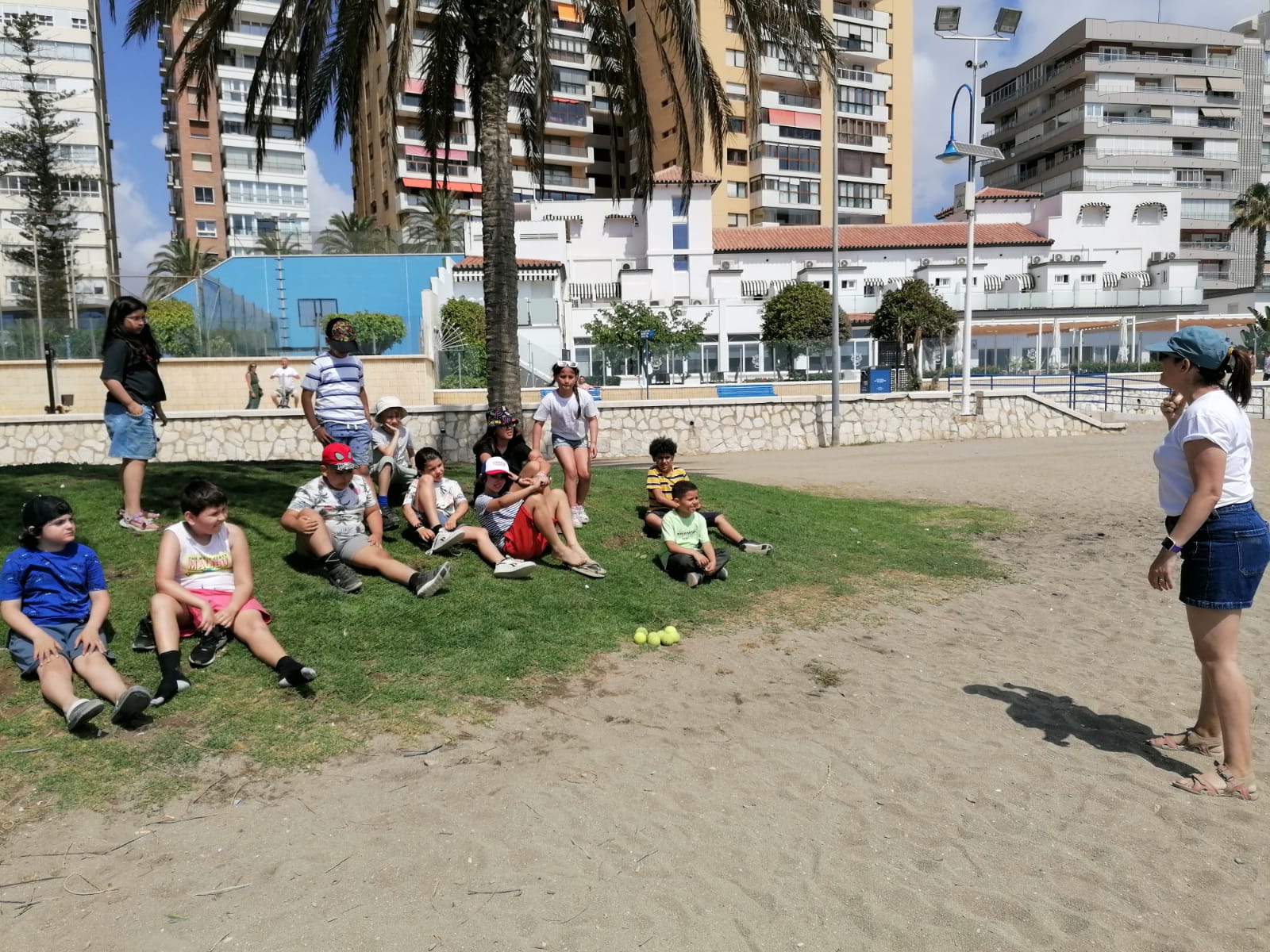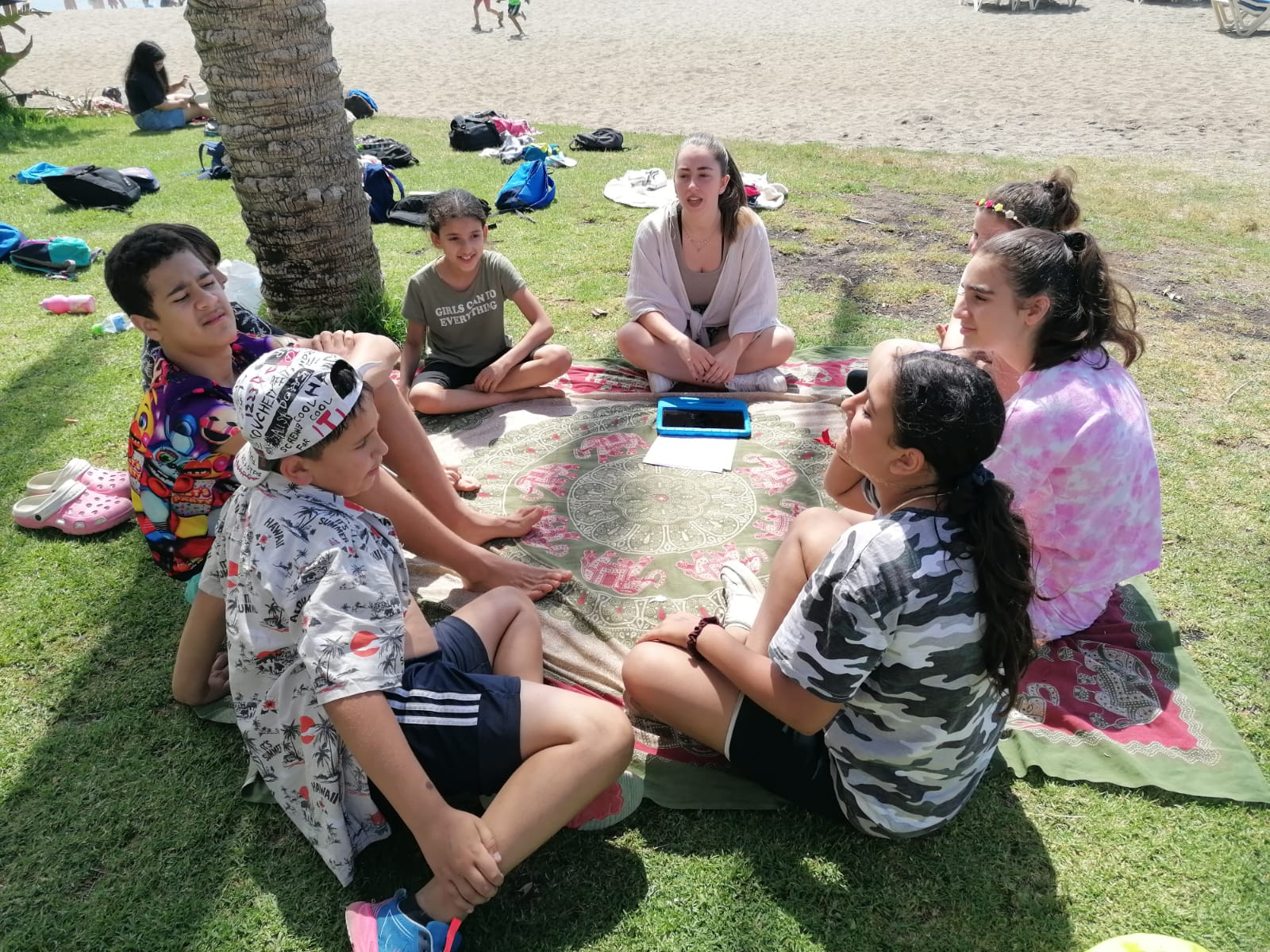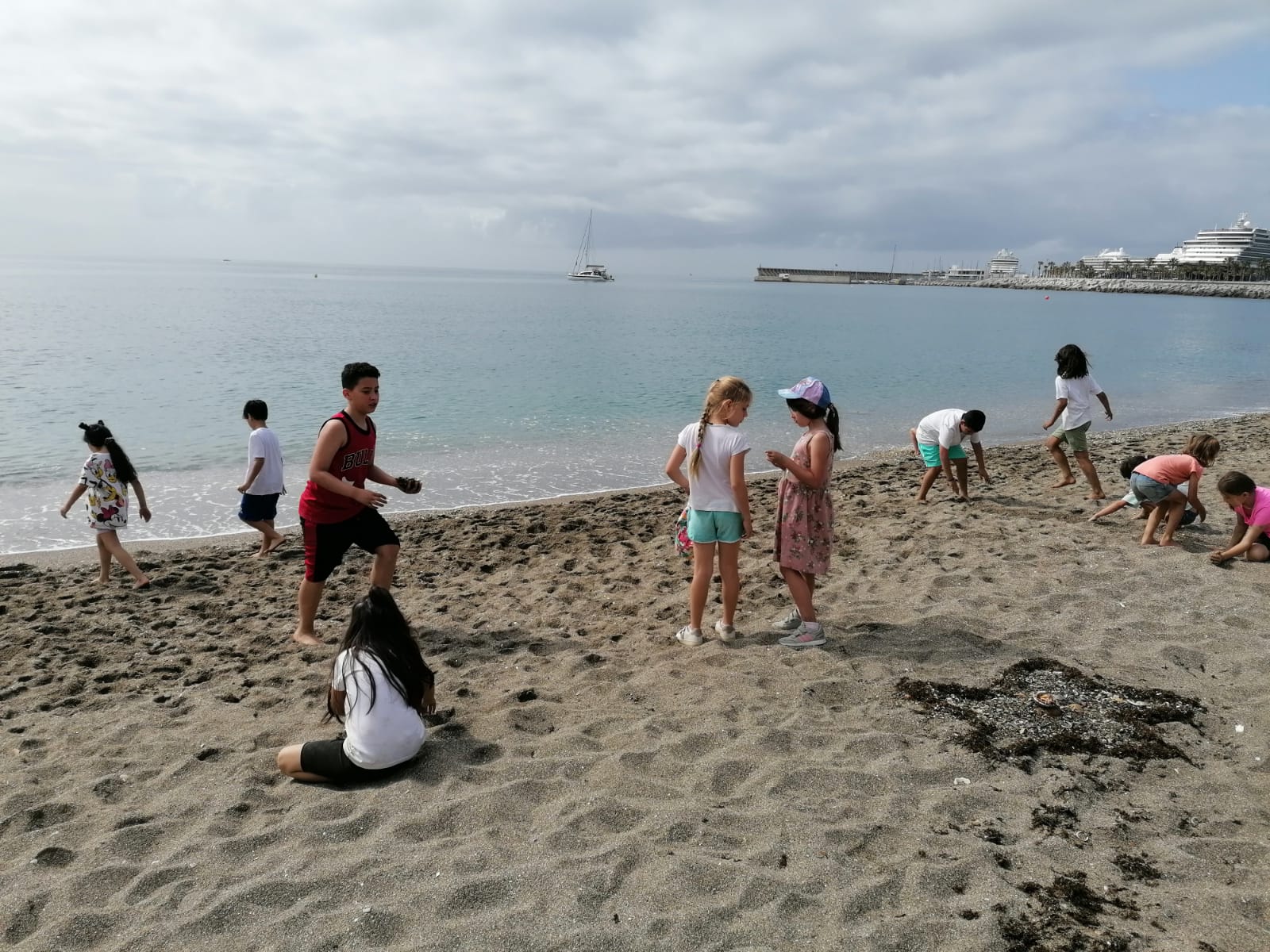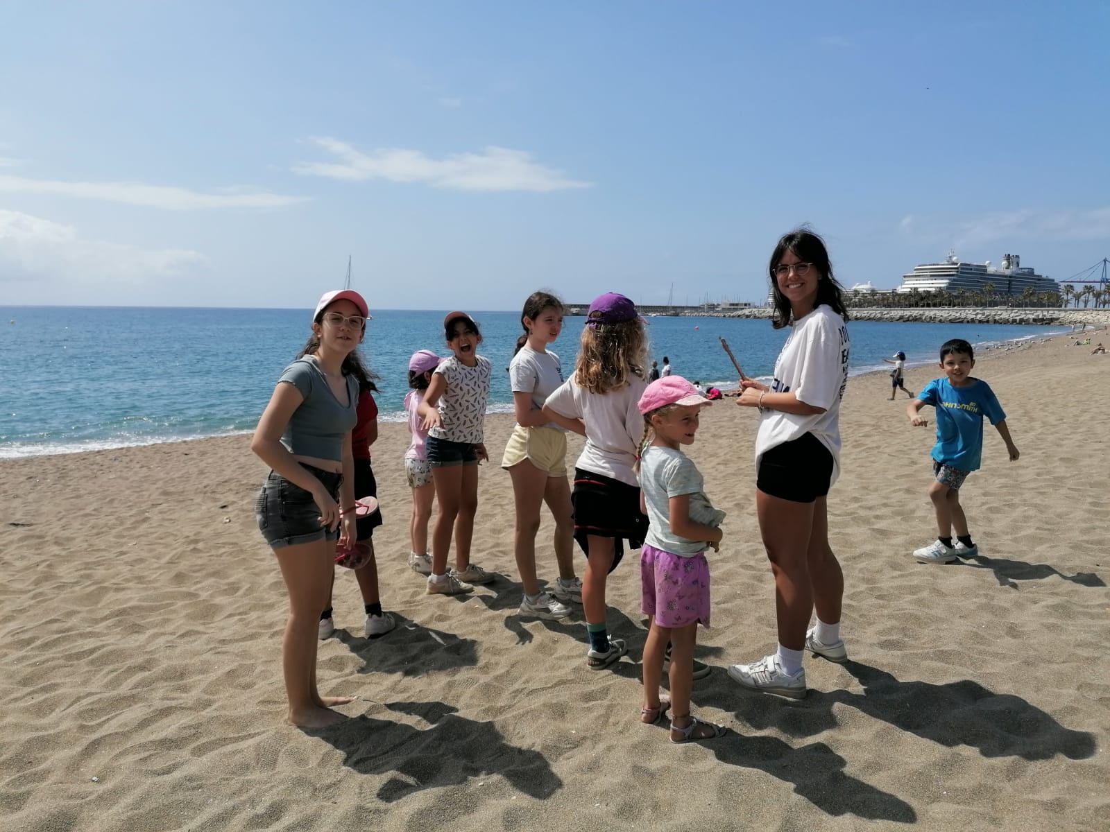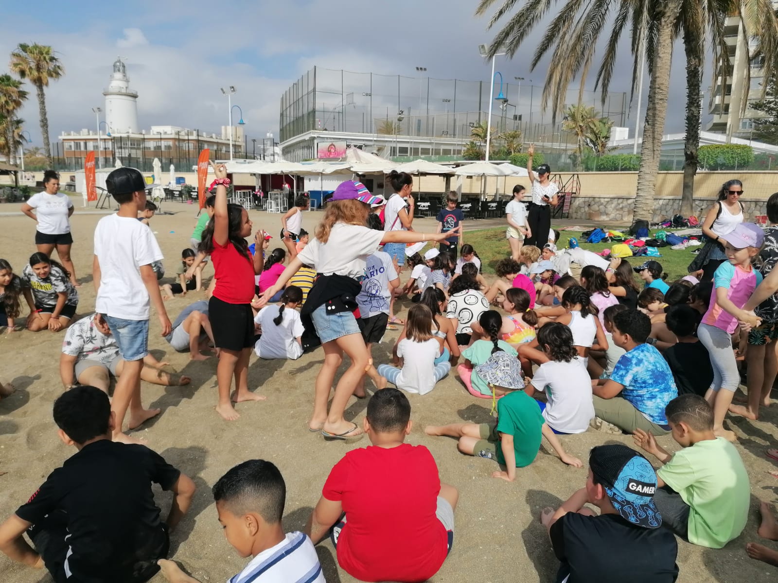 Dentro de nuestro entorno cercano, en esta ocasión hemos cambiado el bosque de Gibralfaro por la playa donde hemos realizado una serie de actividades integrando diferentes áreas. Talleres sobre yoga, expresión artística, geometría, … donde ha participado el alumnado de 1º a 5º y nuestra amplia comunidad educativa: monitoras, voluntariado, familias,…¡El cuidado de los mayores a los peques ha sido fantástico!.